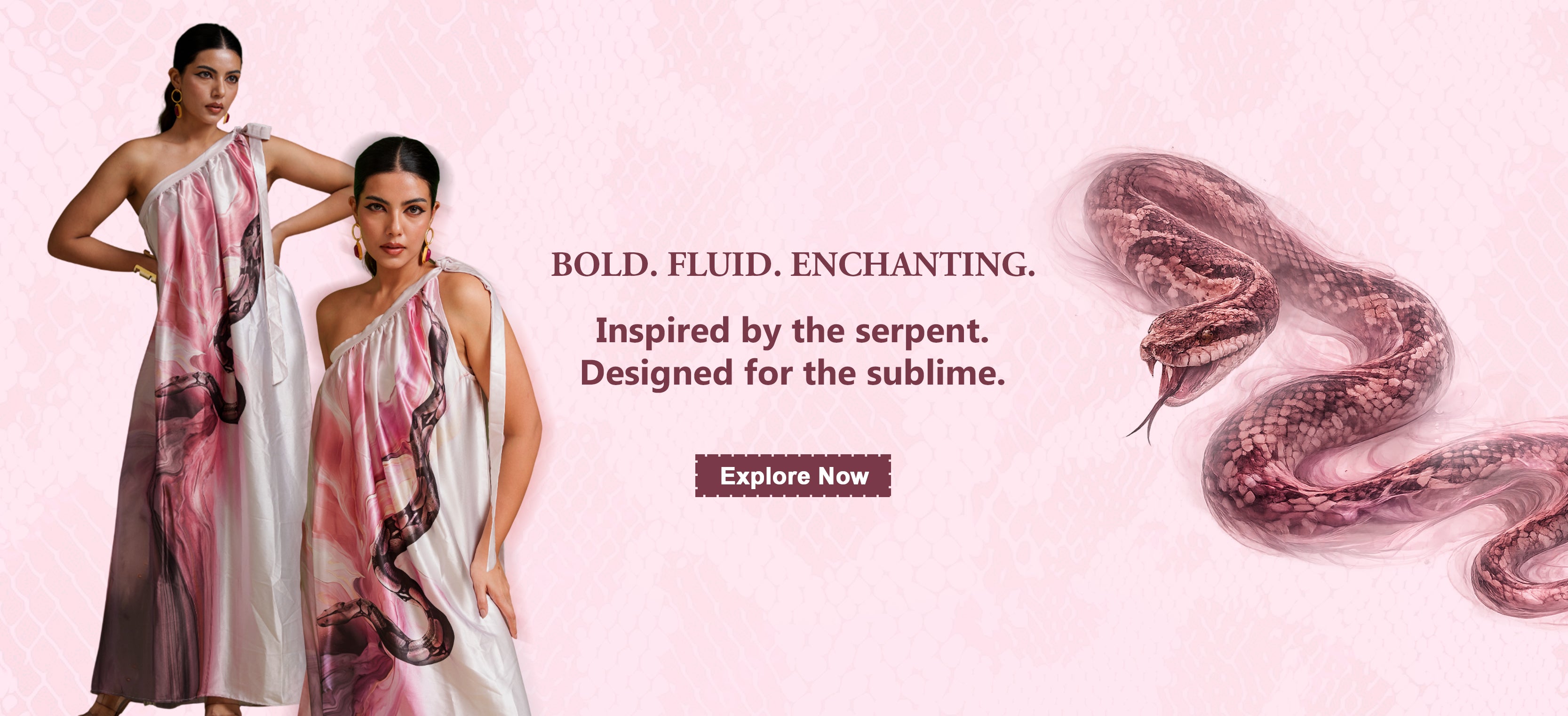 A flowy saree on ivory with grey and rust tiger motifs and a bold pallu tiger face. Abstract wave strokes add an artistic edge. Paired with an ivory blouse, it blends wildlife realism with modern couture—perfect for cocktail evenings and art events. “Roar of Elegance.”
