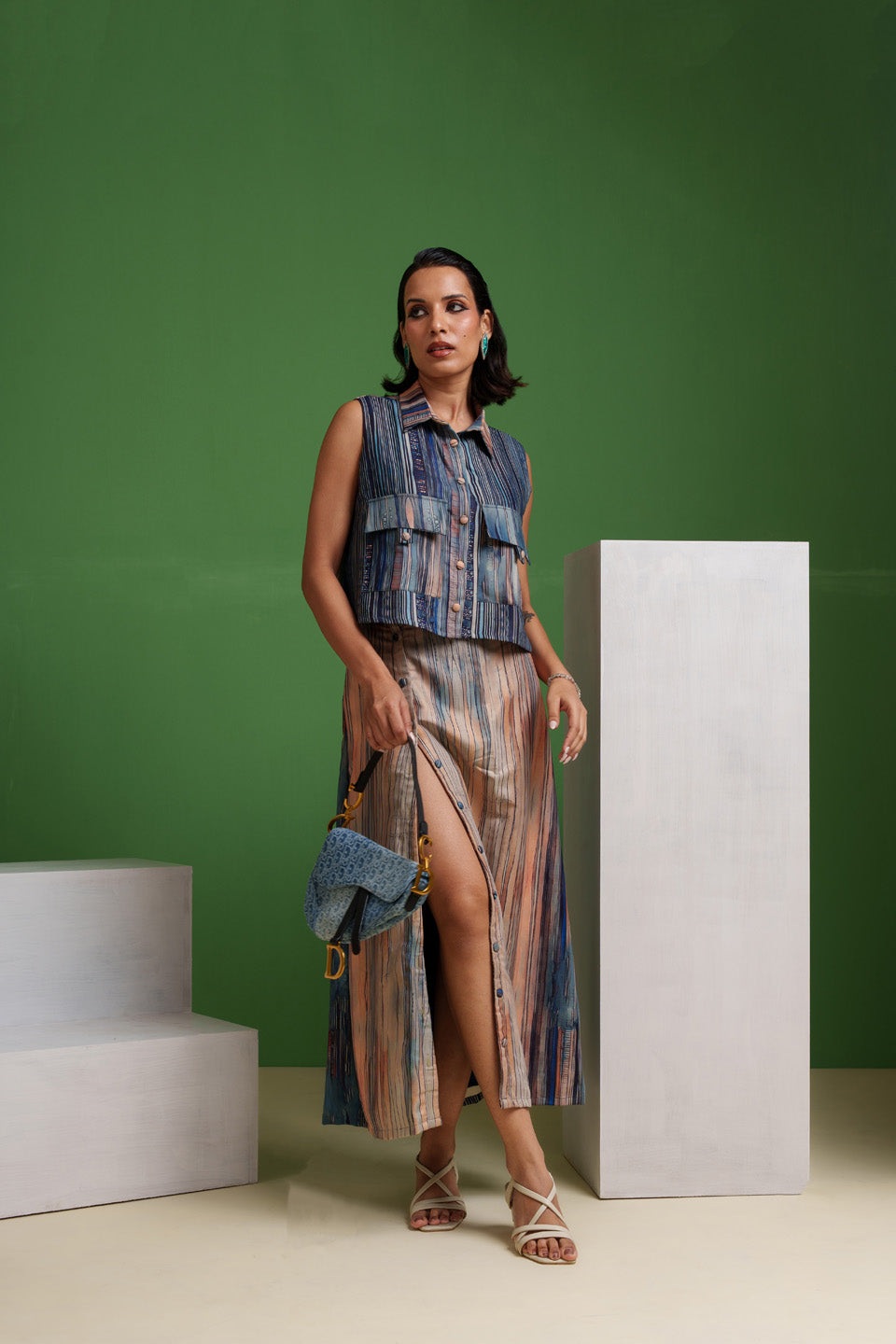 - Details- Features flap pockets on the chest with button detailing, giving it a utility-inspired structured touch yet casual vibe. Straight hemline that balances with the flow of the skirt.